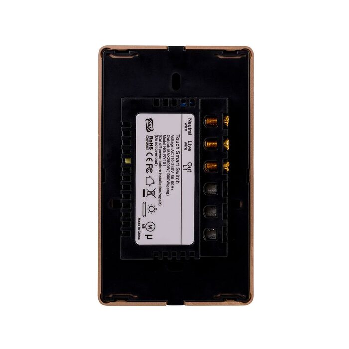 This unit supports 2-way switching through the app and can be installed with or without a neutral wire, providing a luxury smart upgrade for modern interiors.