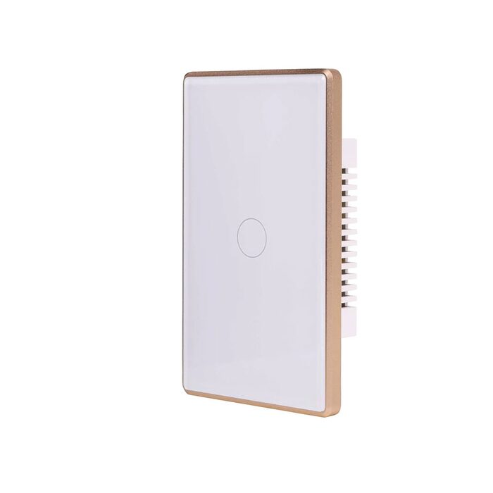 The Havit HV9120-1 is a single-gang smart touch switch with a white tempered-glass face and elegant gold trim.