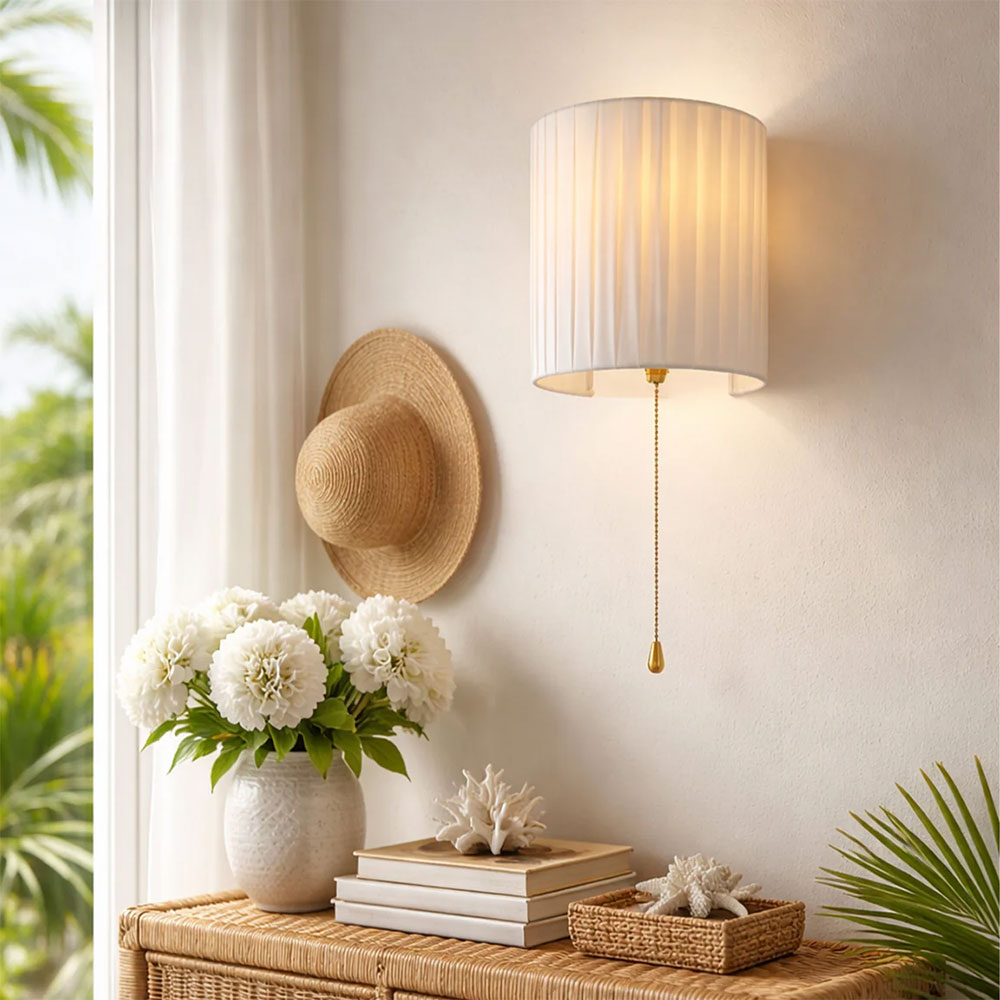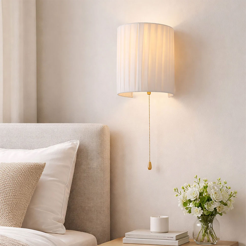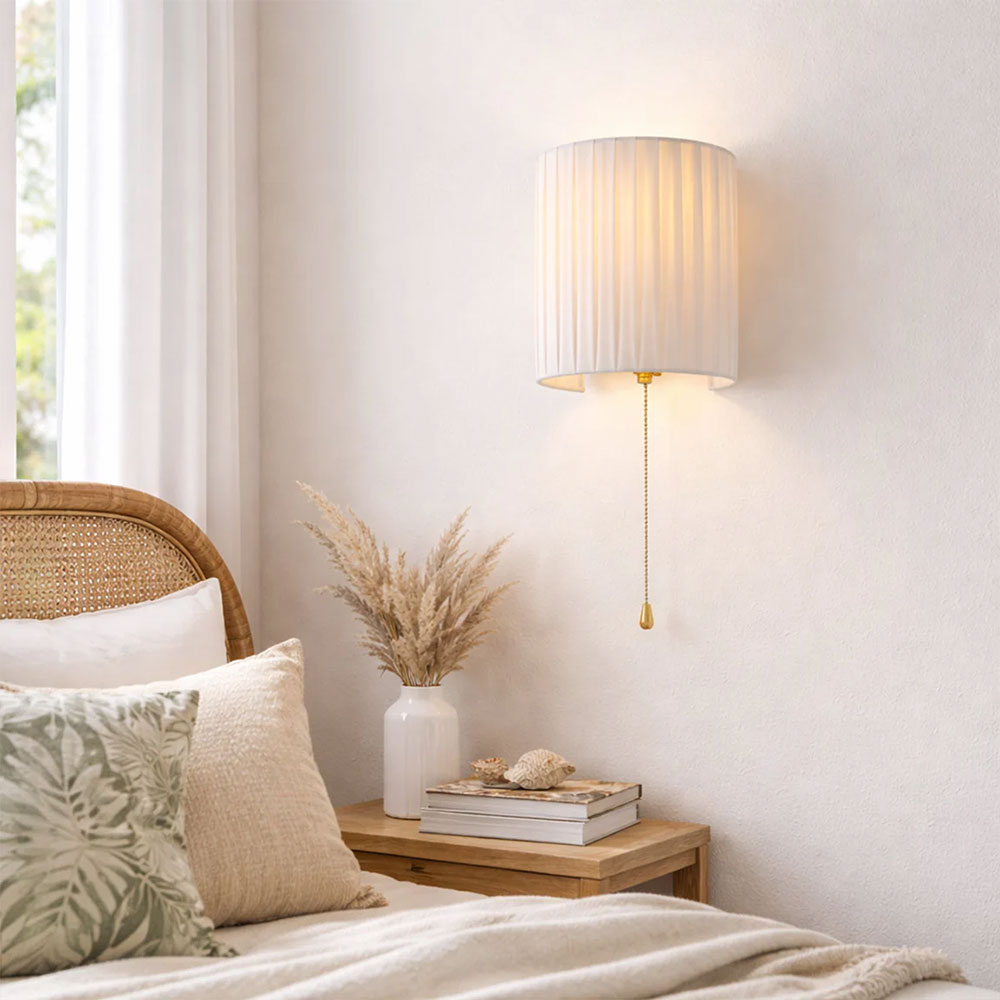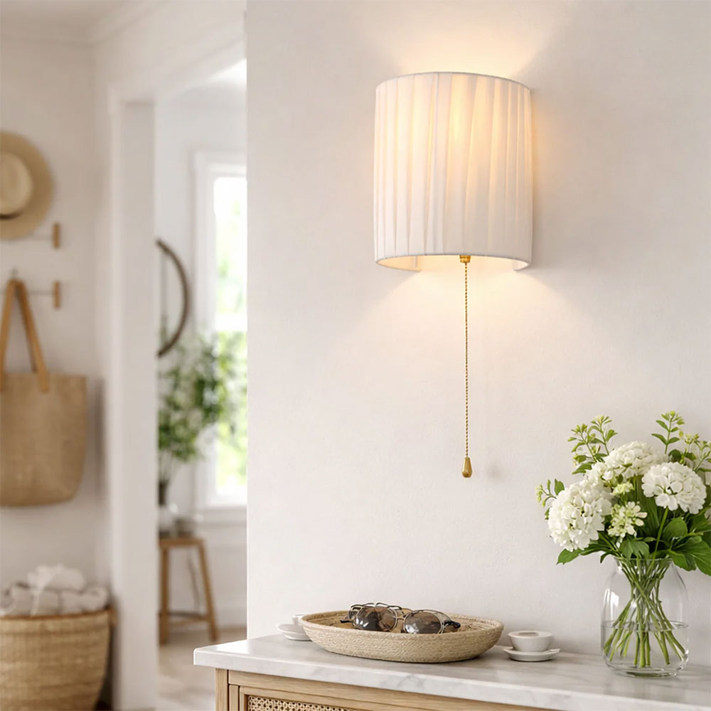 Add understated elegance to your home with the Lexi Lighting Willow Pull Cord Wall Light, a beautifully crafted half-cylinder wall sconce featuring a high-quality white fabric pleated shade that softly diffuses light to create a warm and welcoming ambiance in any indoor setting.