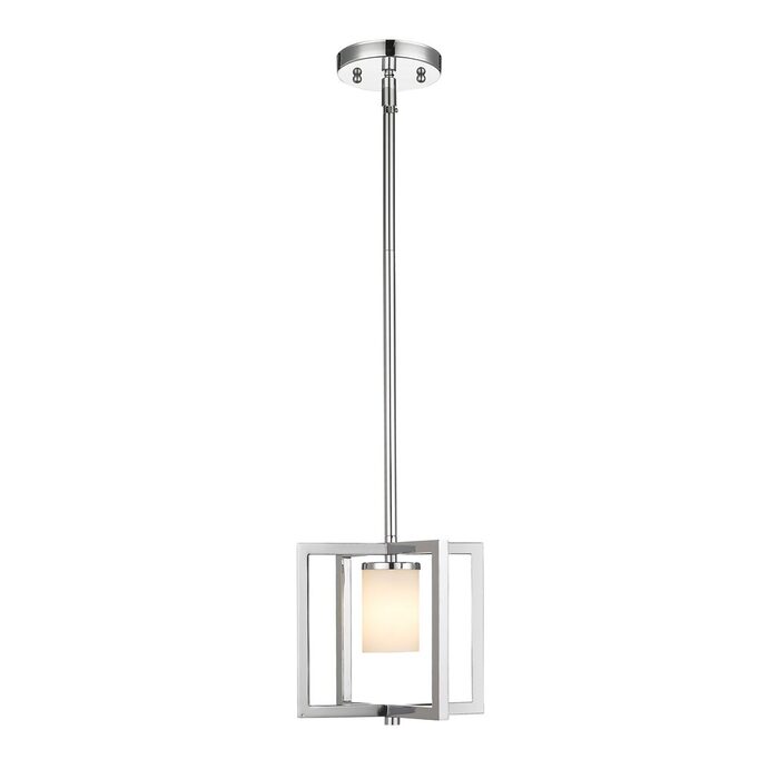 Wilton mini pendant in Chrome with cased opal glass.