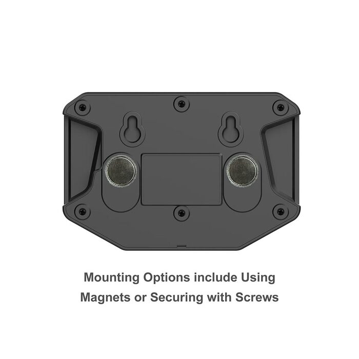 - Mount via magnets or screws (screws are not included)
