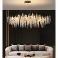 The Wisteria Crystal Drop Pendant in Gold is a striking centerpiece that will transform any room into a luxurious haven.