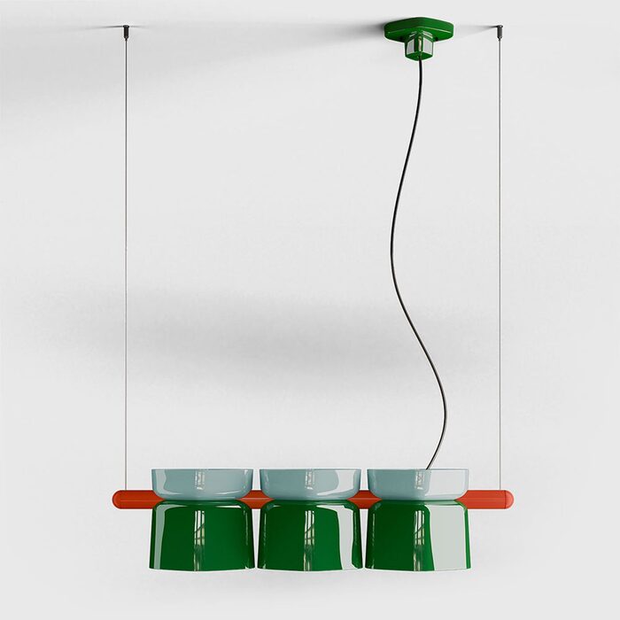 Yakitori Pendant Light by Ferroluce brings a touch of rustic charm to contemporary spaces, drawing inspiration from traditional Japanese street food culture.