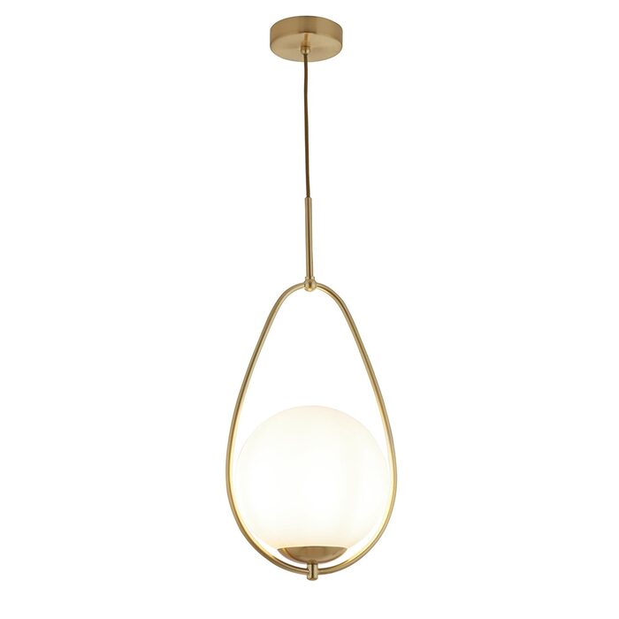 Our beautifully designed Yara pendant light. An elegant glass globe shade at the centre. With gold metalwork detailing and ceiling rose.