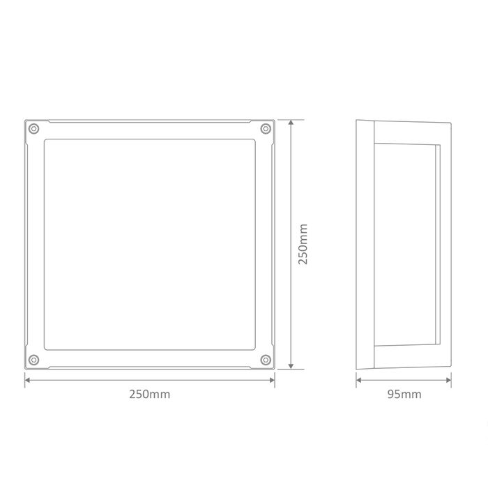 Featuring a Black, White or Dark Grey powder coated Aluminium frame, with an opal glass diffuser to give a wide spread of light.