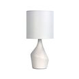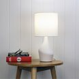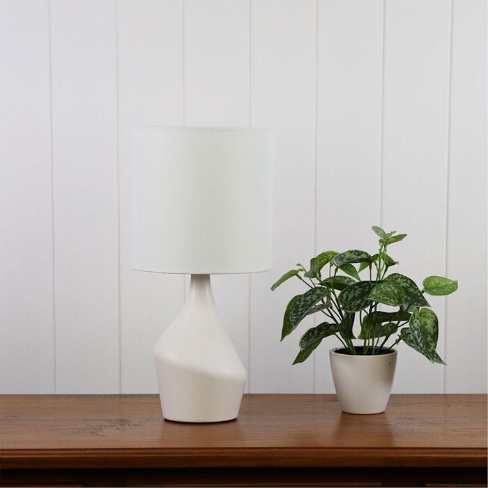 The Zale white ceramic table lamp comes complete with a fabric drum shade. This sleek lamp is perfect for a bedside or study nook in a modern or hamptons styled home. The on/off switch is located on the cord.