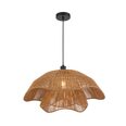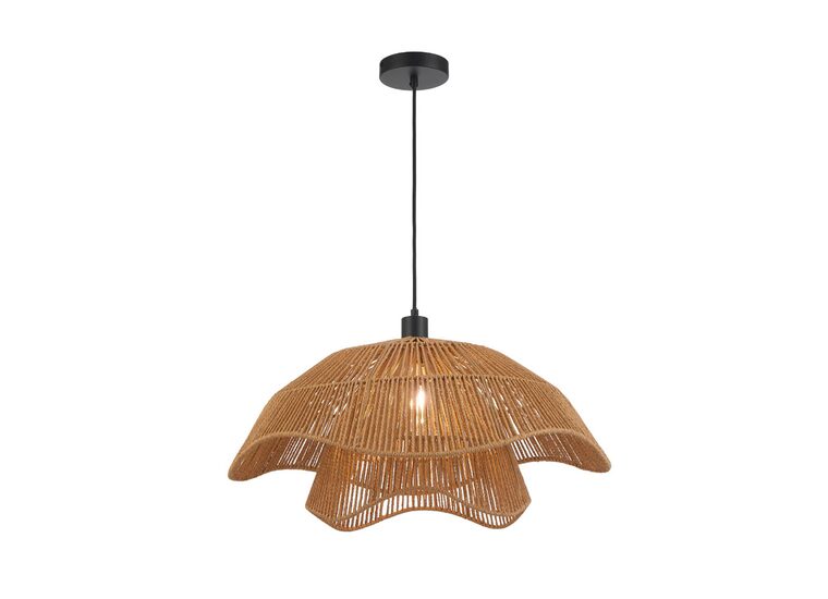 The Zamora pendant features an organic, flowing design with a natural woven finish that embodies relaxed coastal and bohemian style.