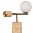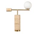 Crafted from polished travertine, this lamp features a stunning contrast of brass accents and a soft, milky-hued orb that creates a warm, inviting ambiance.