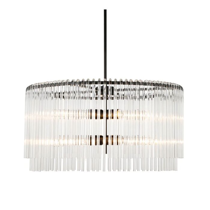 The Art Deco style born in 1920s is evident in the delicate elegance of our Zara Pendant collection. Hand-made crystal rods drape effortlessly over a powder coated black frame, hanging in modest harmony.
