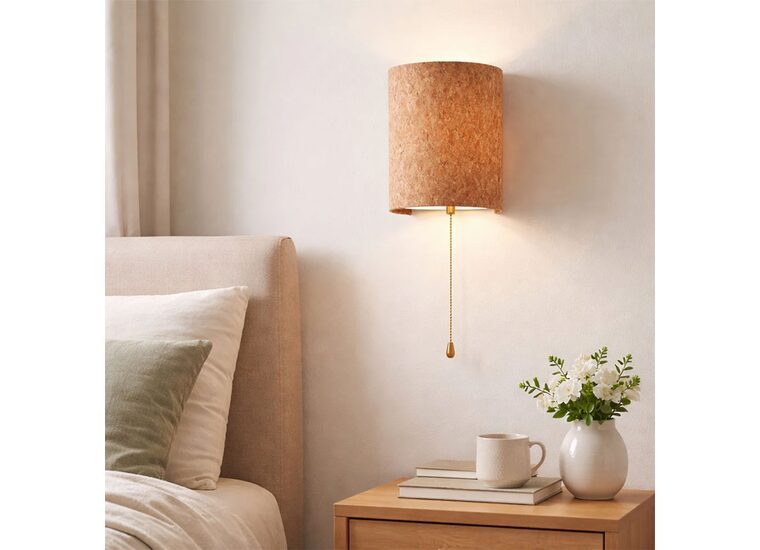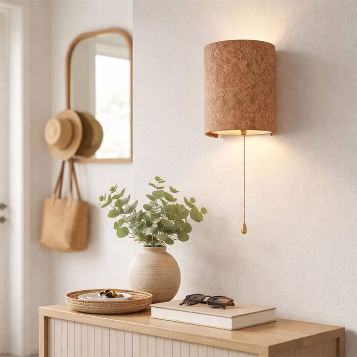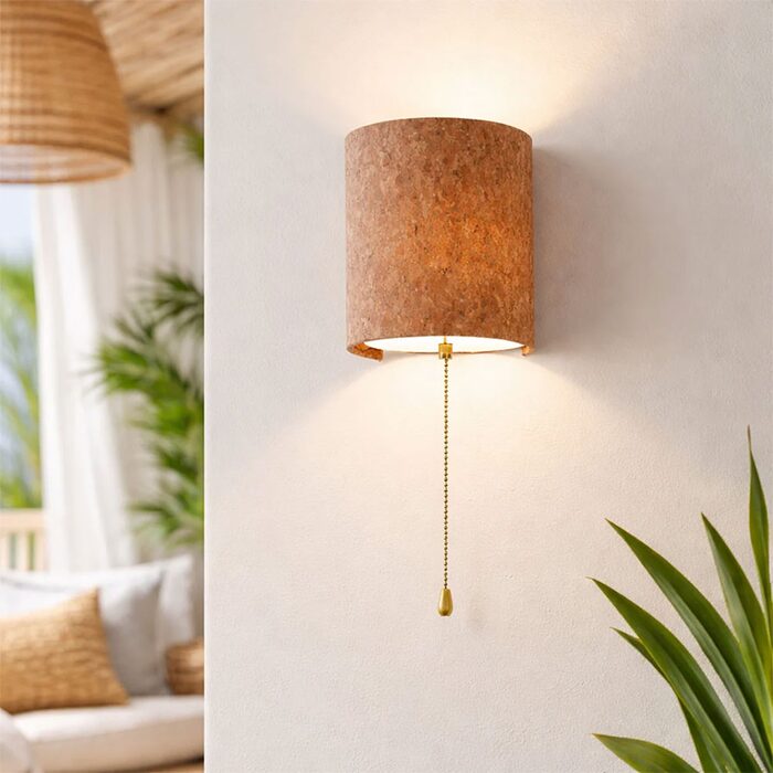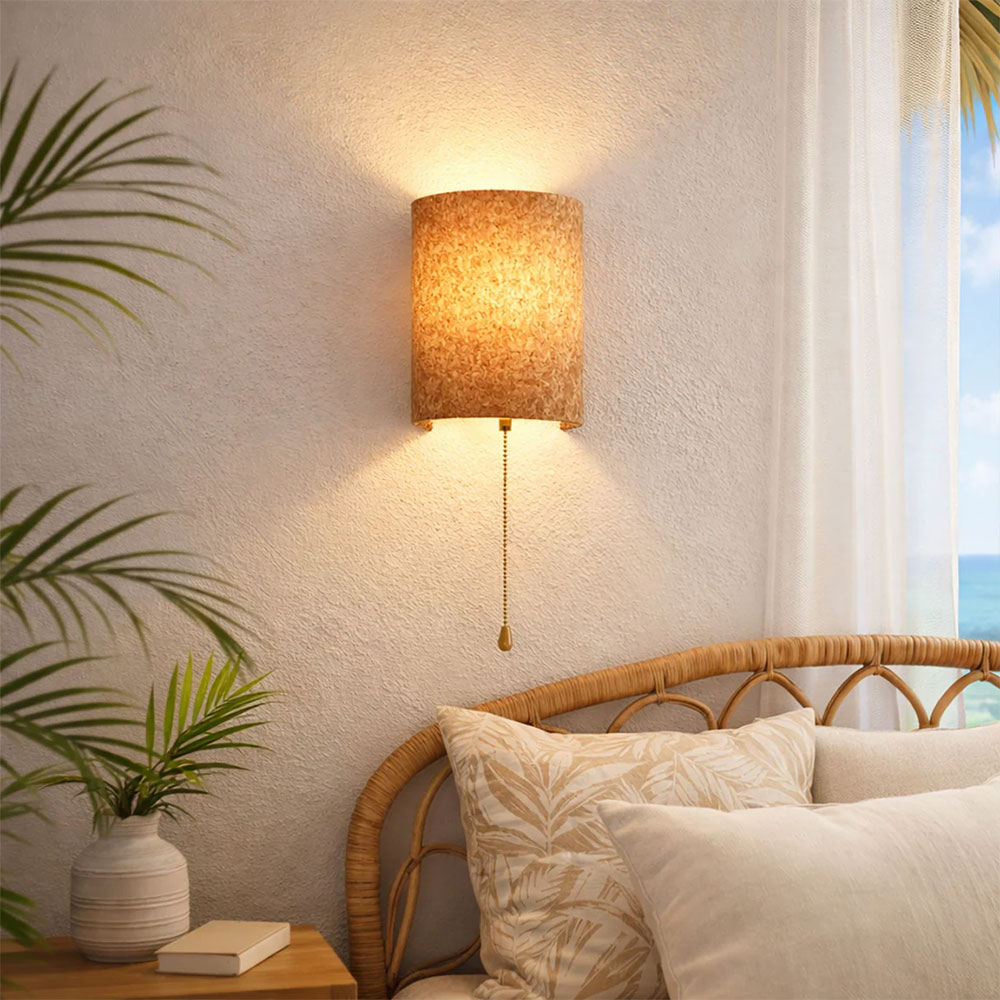 Crafted from natural cork with a distinctive half-cylinder silhouette, the Zella Pull Cord Wall Light elevates interiors through its warm texture and minimalist form.