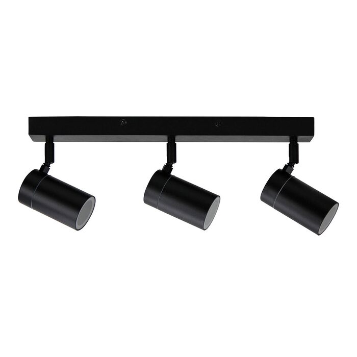 Zeta triple IP44 rated black outdoor spot light. Supplied without a globe , allowing you to choose between LED, halogen or compact fluorescent lamps.