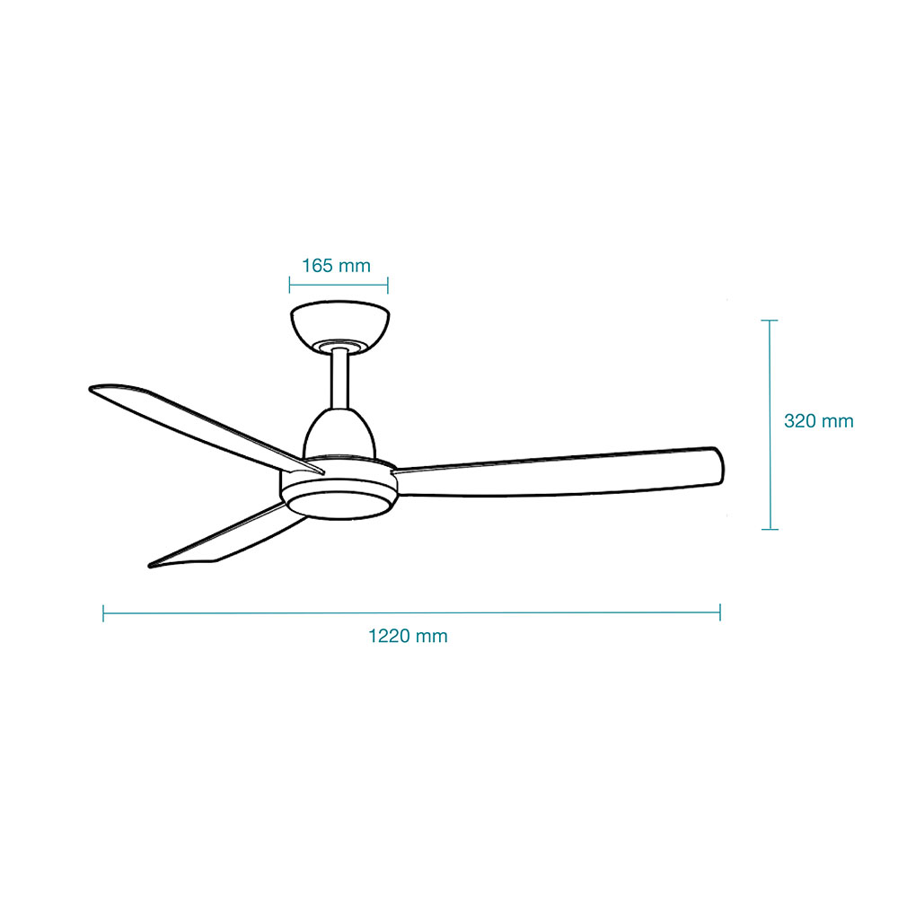 Powered by an energy-efficient 23W DC motor, this ceiling fan is available in a 48" (1220mm) size, the Zorro DC is crafted with durable ABS construction for long-lasting reliability and sleek modern style.