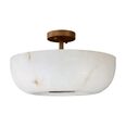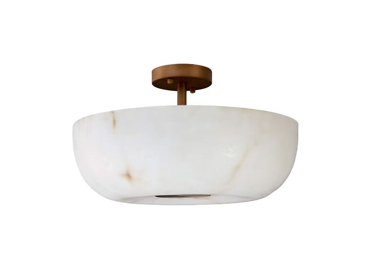This stunning alabaster flush mount combines soft natural textures with a sleek brushed gold accent, offering a refined touch to any room.
