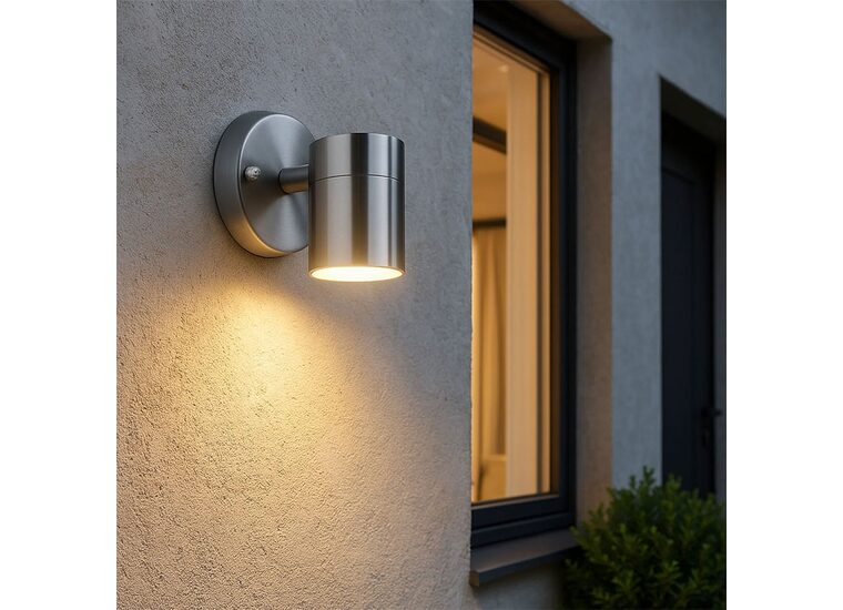 Elevate your covered entryways and outdoor living spaces with the Zyven Fixed Single Wall Light, featuring a sleek modern cylinder downlight design crafted from durable stainless steel in versatile Matte Black, White, or Polished Silver finishes for a contemporary aesthetic that complements any décor.